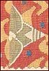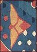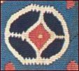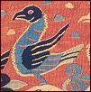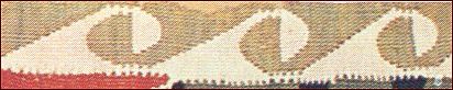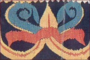 ![]() ![]() Den øverste bort, der afslutter tæppet, består af en stribe à la greque-borter eller løbende hund, som de også kaldes. Den nederste bort udgøres af en række akantus- eller lotusblomster. I midten adskilles de to motiver af en søjle, der bærer to hvælv. Overalt, hvor der er plads, er den udfyldt med forskellige ornamenter og stiliserede blomster.