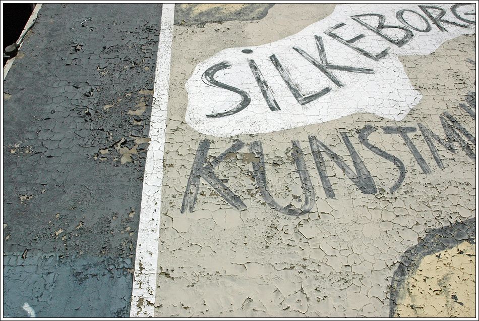 Men så slap jeg hele dette forlægsarbejde. På grund af tidnød og truende regnvejr kravlede jeg den sidste morgen før min afrejse til Nordnorge op på stilladset. Klokken var 6. Jeg havde pensler og farve med mig. Så malede jeg løs uden afbrydelse - uden at kravle ned og se efter, om den nu var i orden, hvad jeg havde lavet - uden at gå tilbage for at korrigere. Klokken godt 8 var muren færdig, en times tid før regnen igen silede ned over Silkeborg.
