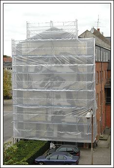 At afrense gavlen for gammel maling, udgipse huller og revner, spartle flader, hvor bunden var ødelagt, ud og male de skarpt afgrænsede flader i 4 farver op til 2 gange var et regulært arbejde af håndværkermæssig karakter. Det blev udført med store afbrydelser på grund af regnvejr, og på et tidspunkt var jeg i tvivl, om jeg kunne få arbejdet færdigt til den fastsatte tid.