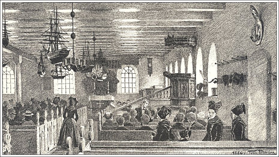 Tom Petersen: Det indre af Sønderho Kirke. 1886.