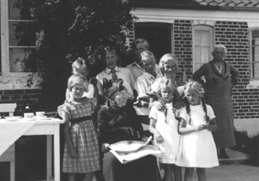Familien samlet formentlig i sommeren 1935 eller 1936 foran huset "Helene", Øster Land 21.