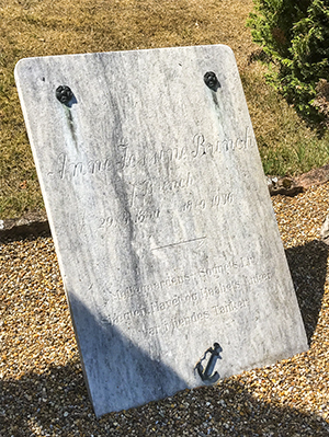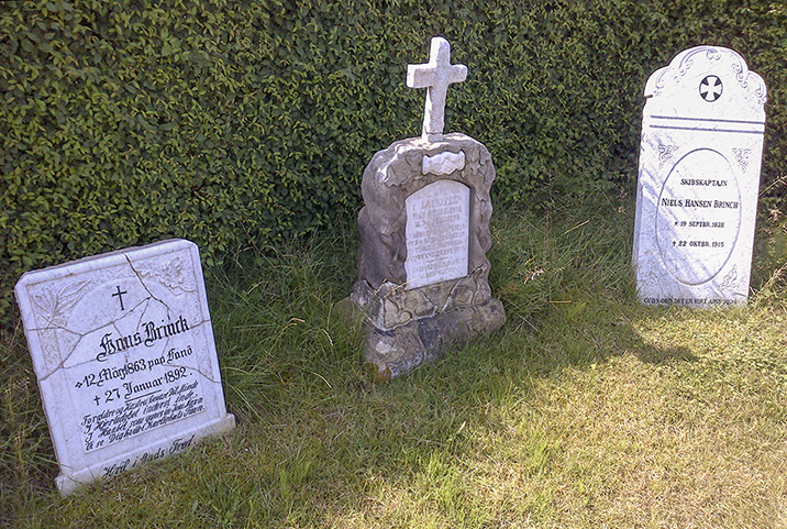 Gravstenen i midten er over Lene Lauridsdatter; til højre er Niels Hansen Brinchs gravsten, og til venstre er deres søn, Hans Brinchs, gravsten.