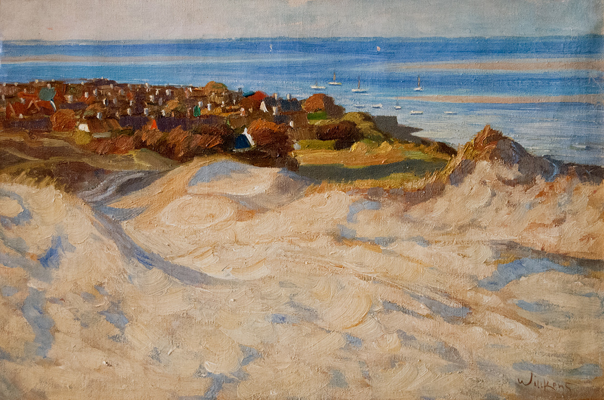 August Georg Christoph Wilckens (1870-1939) var tysk og uddannet som maler i München, Nürnberg og Dresden. Omkring 1899 fandt han imidlertid vej til Fanø, og i 1905 købte han et hus i Sønderho, hvor han forblev en trofast gæst frem til sin død. Billedet tilhører Fanø Kunstmuseum © og er gengivet med venlig tilladelse.