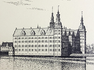Litografi af Frederiksborg Slot.