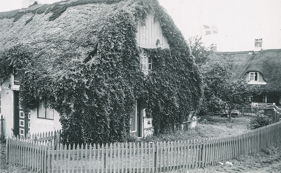 Fig. 2. Naboens husgavl, fotograf Petrea Lunds hus, Kropladsen 9. I baggrunden Sønderho Kro. (At betegne Kropladsen 9 som nabo til Sønder Land 20 er vist lidt af en overdrivelse. Mon Sven Gréen husker forkert?)
