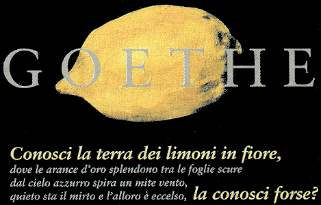 Conosci la terra dei limoni in fiore? dove le arance d'oro splendono tra le foglie scure dal cielo azzurro spira un mite vento, quieto sta il mirto e l'alloro è eccelso, la conosci forse? Laggiù, laggiù io andare vorrei con te, o amato mio! Traduzione: La T-shirt da antologia |